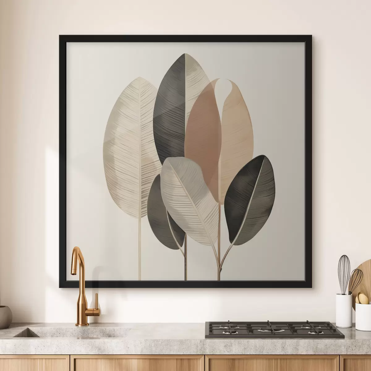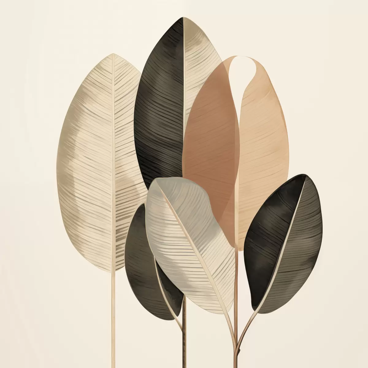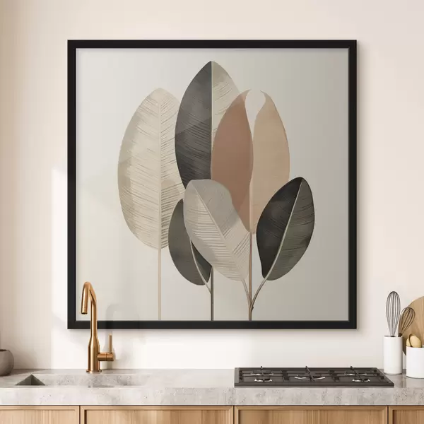 Poster Plante înalte cu frunze ovale, în nuanțe discrete, cu forme dreptunghiulare abstracte Nr f48414