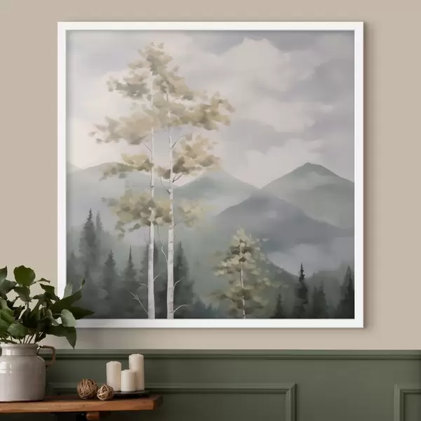 Poster Copaci pe fundalul munților, imitație de pictură Nr f48421