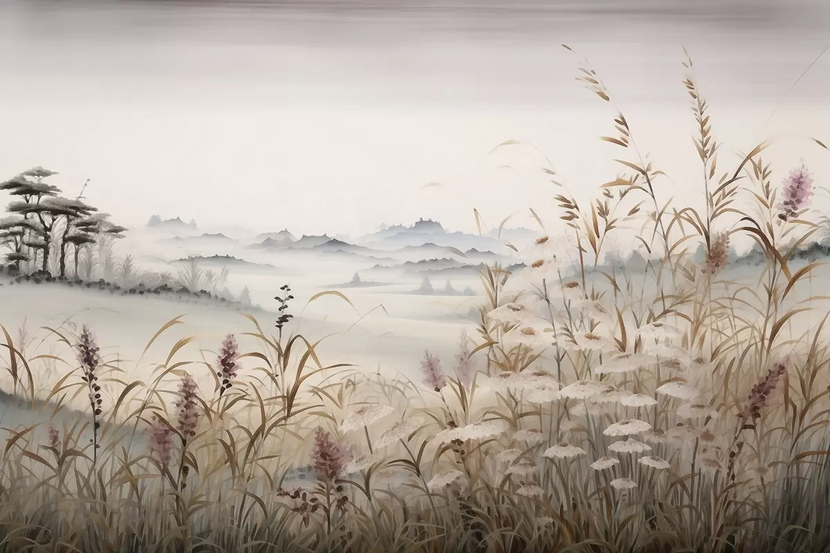 Poster Peisaj cețos cu iarbă f48481