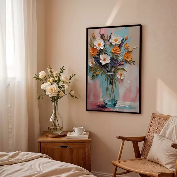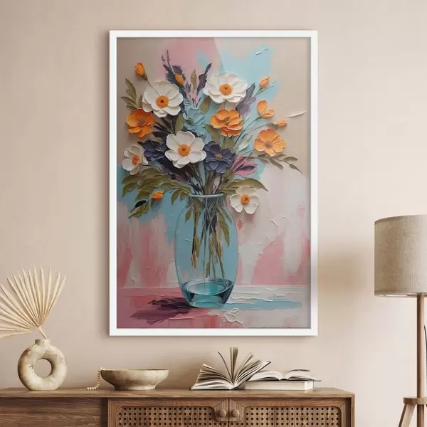 Poster Buchet de flori într-o vază de sticlă pe un fundal colorat f48488
