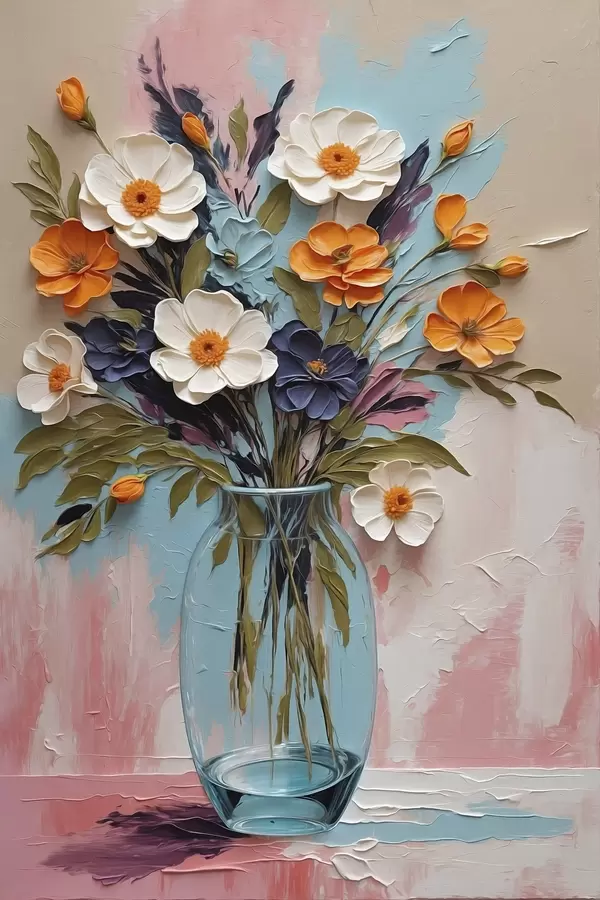 Poster Buchet de flori într-o vază de sticlă pe un fundal colorat f48488