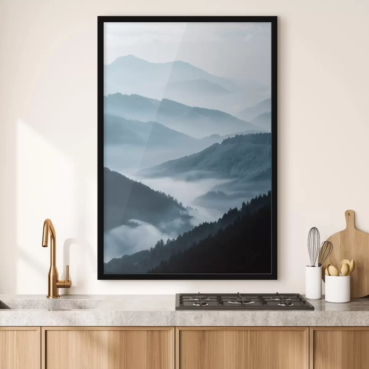 Poster Munți învăluiți în ceață, peisaj albastru f48567