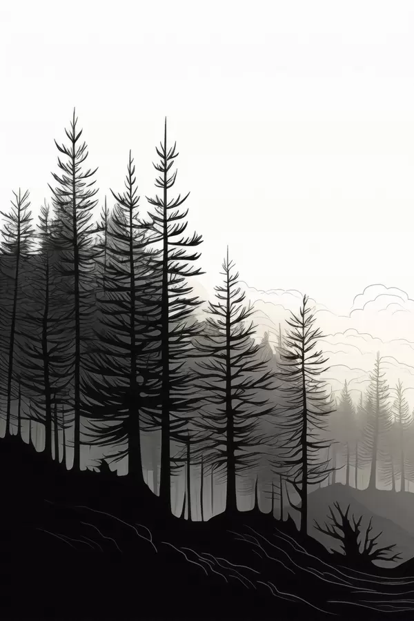 Poster Pădure cețoasă, peisaj alb-negru Nr f48573