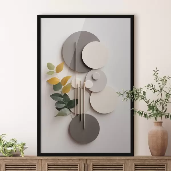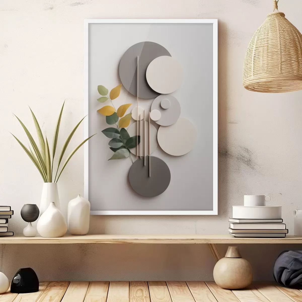 Poster Cercuri geometrice cu o ramură verde cu frunze Nr f48598
