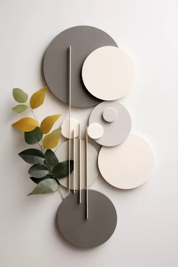 Poster Cercuri geometrice cu o ramură verde cu frunze Nr f48598