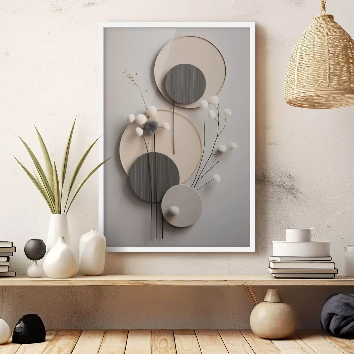 Poster Panouri rotunde cu crenguțe uscate și bile moi f48601