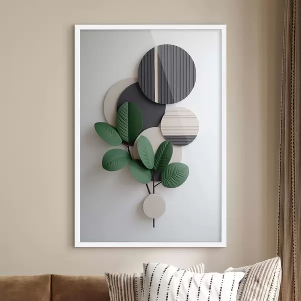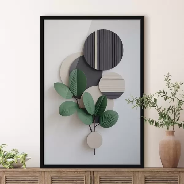 Poster Frunze verzi cu elemente rotunde în relief Nr f48603