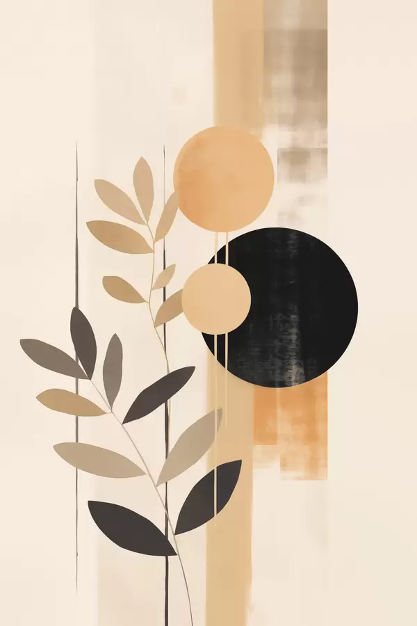 Poster O compoziție abstractă cu frunze și cercuri f48613