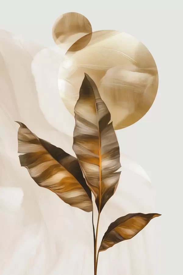 Poster O compoziție abstractă din frunze și cercuri f48614