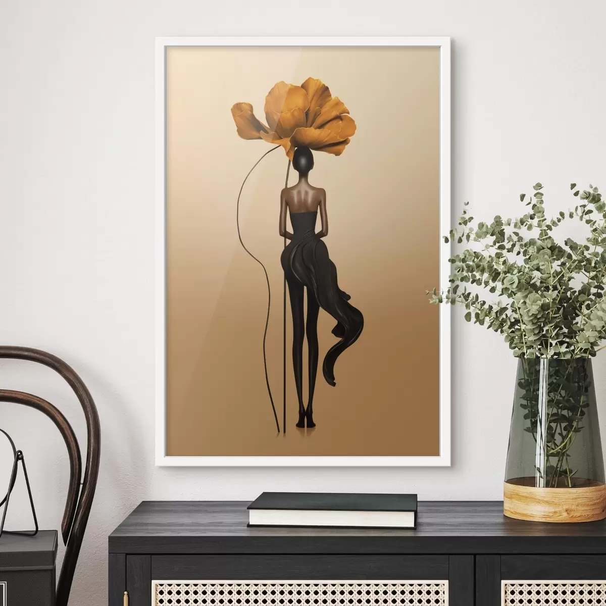 Poster Figurină stilizată cu o floare mare în loc de cap f48618