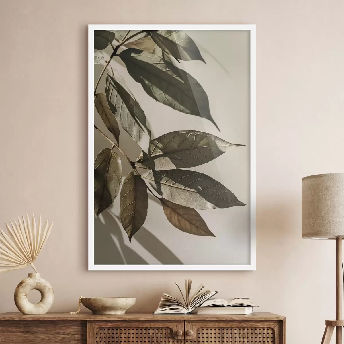 Poster Ramuri de măslin, elemente botanice în nuanțe de bej și verde f48627