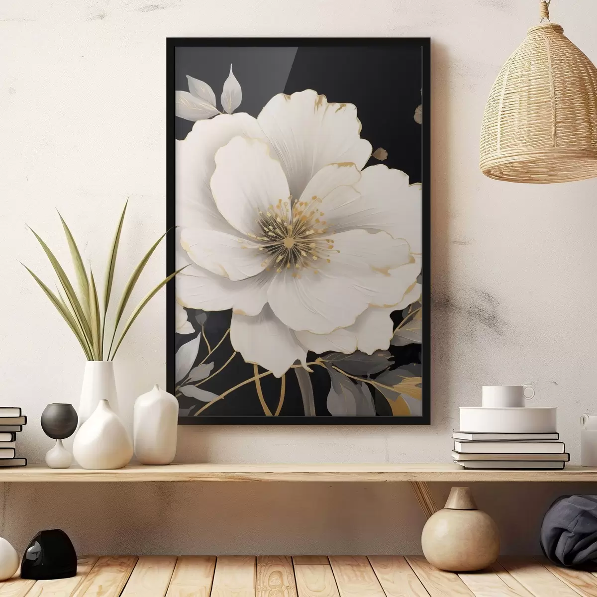 Poster Flori albe pe un fundal întunecat f48633