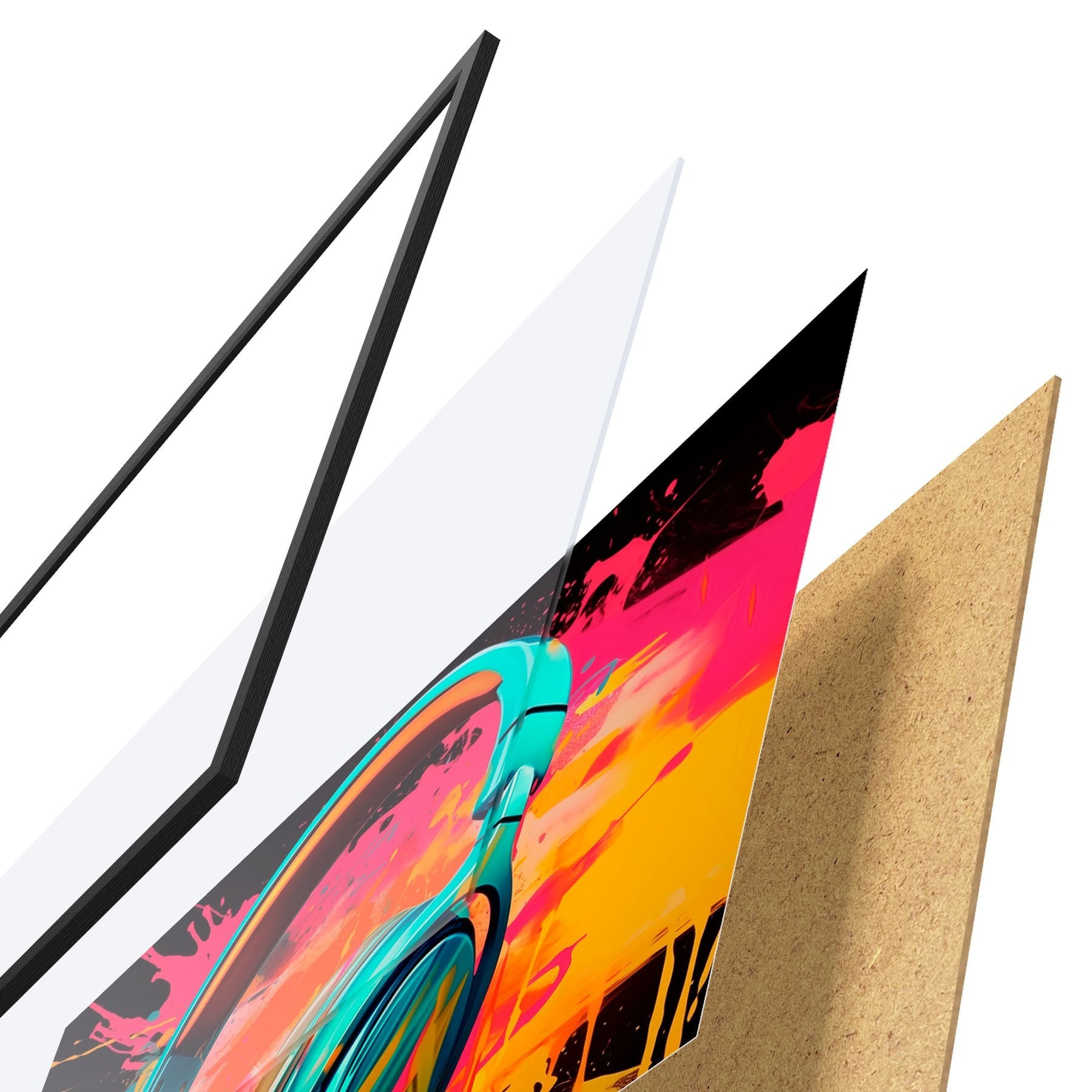 Afișul constă dintr-o ramă, plexiglas, imagine imprimată și suport din PAL. Posterul poate fi agățat imediat pe perete datorită suporturilor de pe spate.