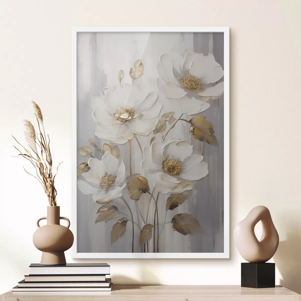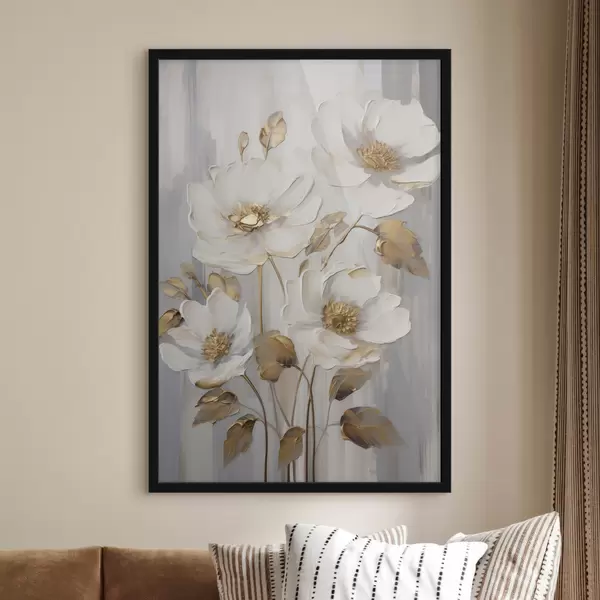 Poster Flori albe cu accente galbene pe un fundal texturat Nr f48722