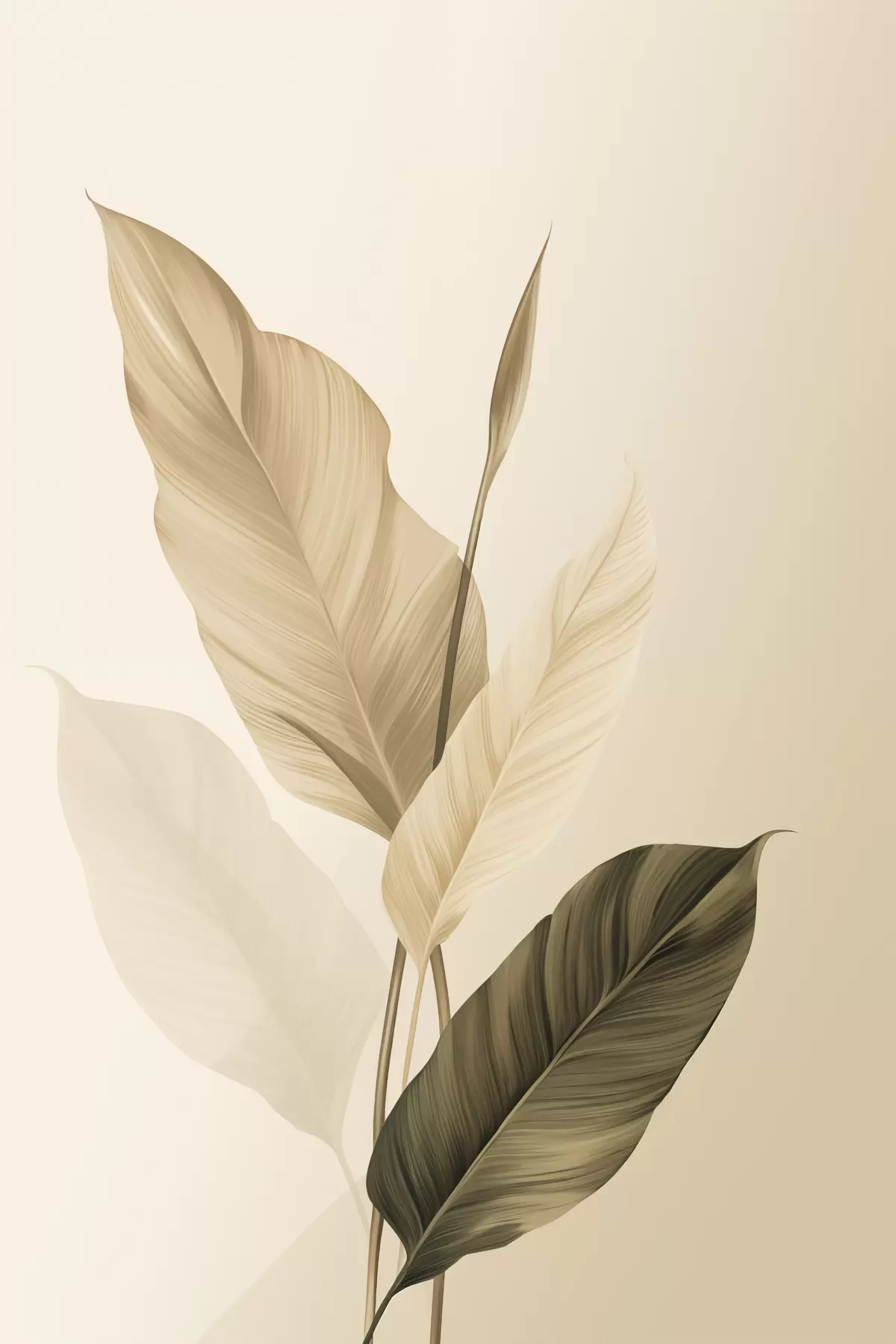 Poster Frunze tropicale mari, în nuanțe de bej și maro, pe un fundal deschis Nr f48725