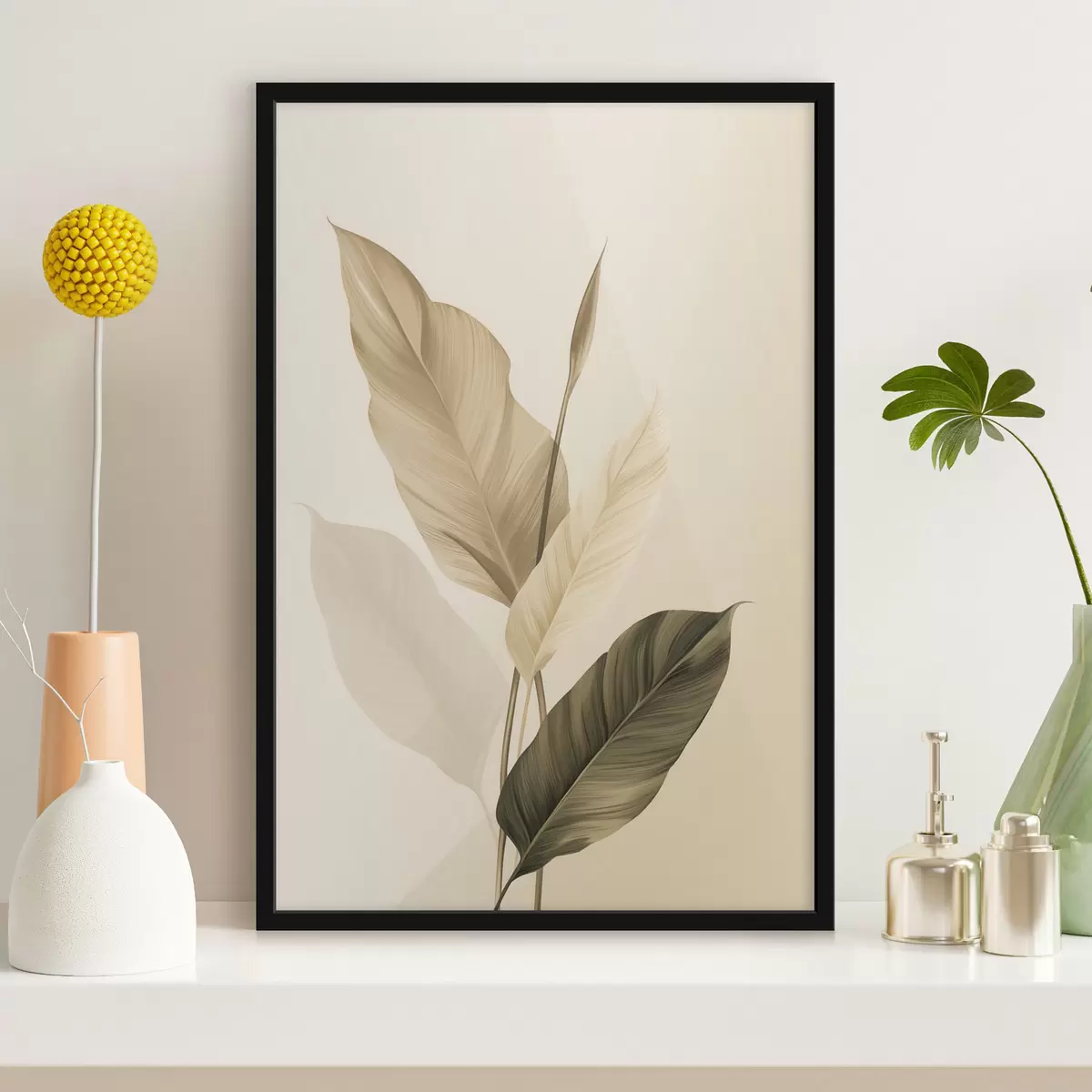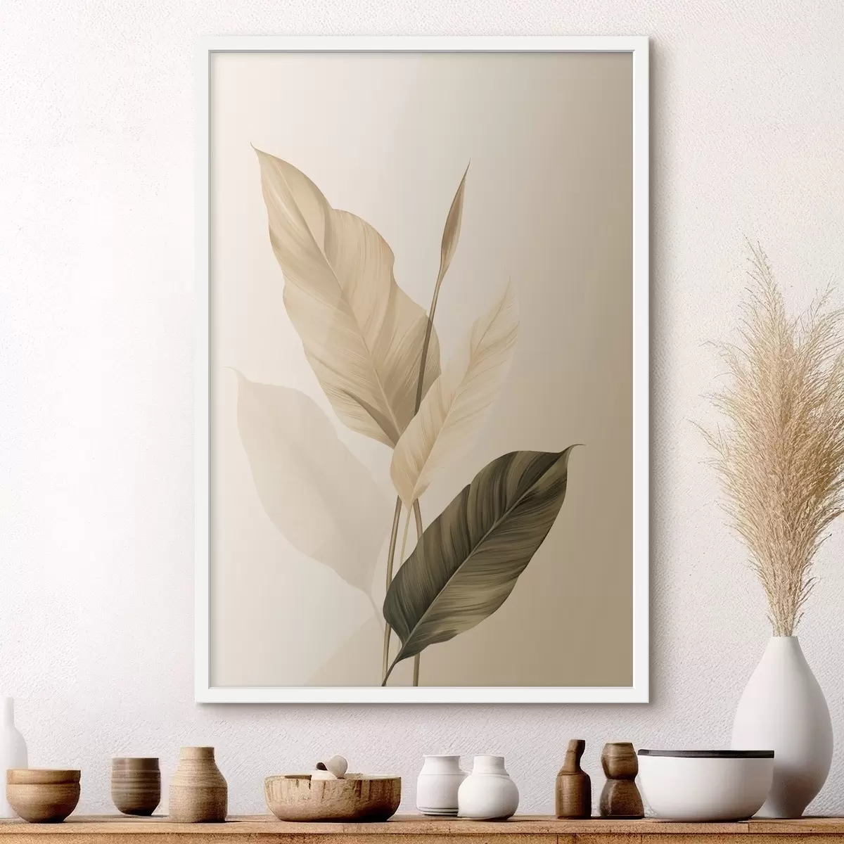 Poster Frunze tropicale mari, în nuanțe de bej și maro, pe un fundal deschis f48725