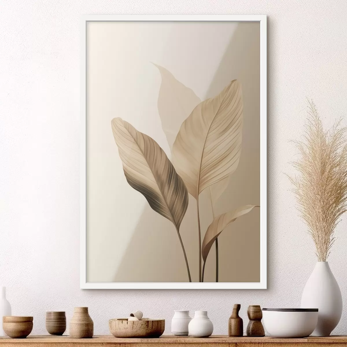 Poster Frunze tropicale mari, în nuanțe de bej și maro, pe un fundal deschis f48726