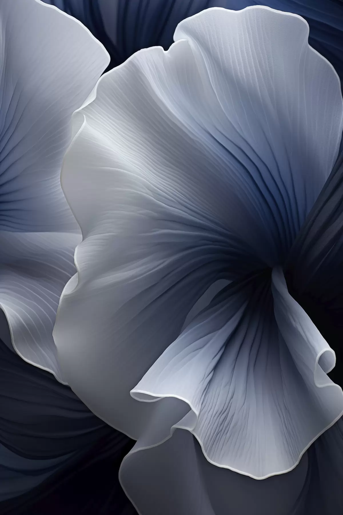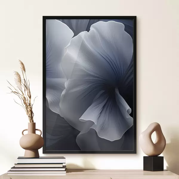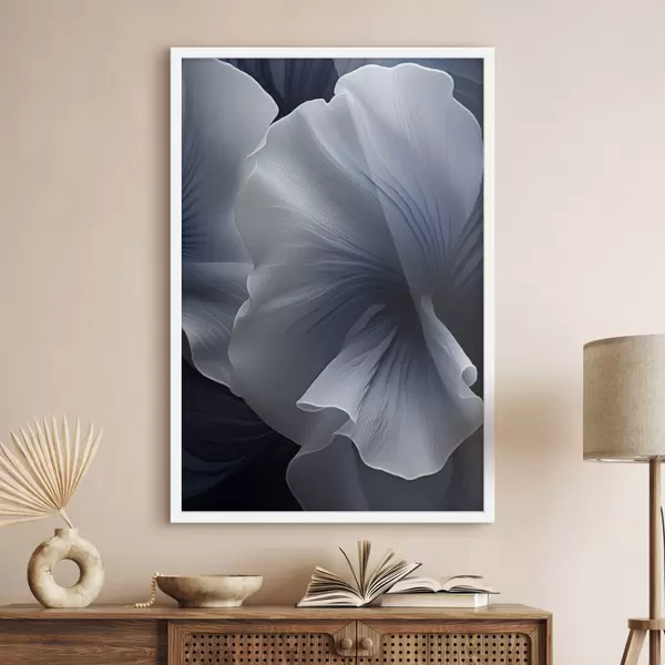 Poster Petale de flori abstracte, albastre și albe, pe un fundal închis Nr f48731