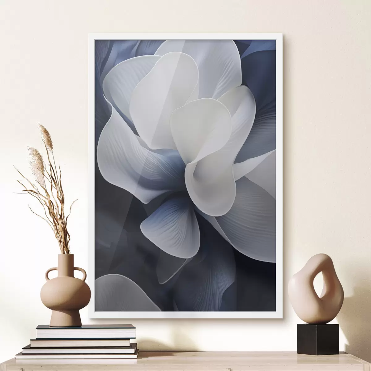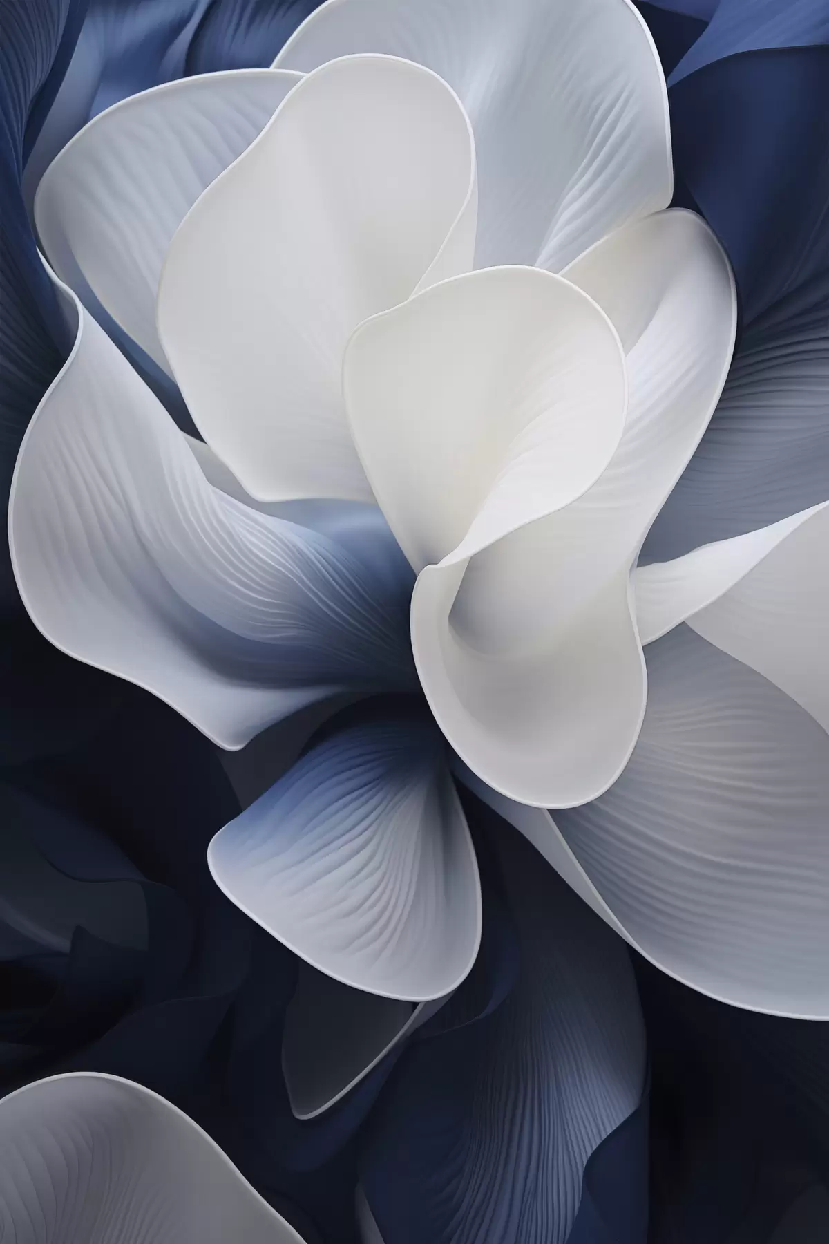 Poster Petale de flori abstracte, albastre și albe, pe un fundal închis f48732