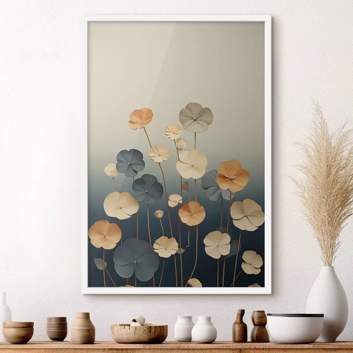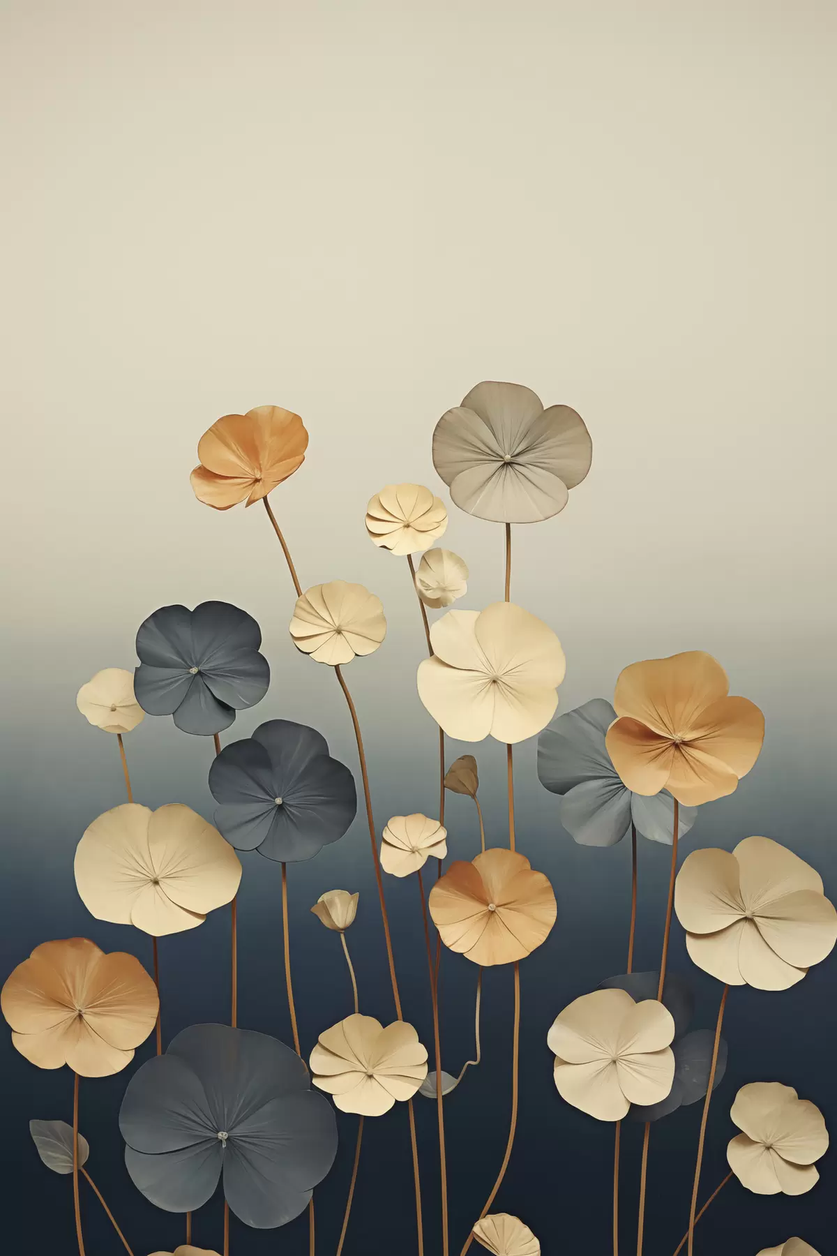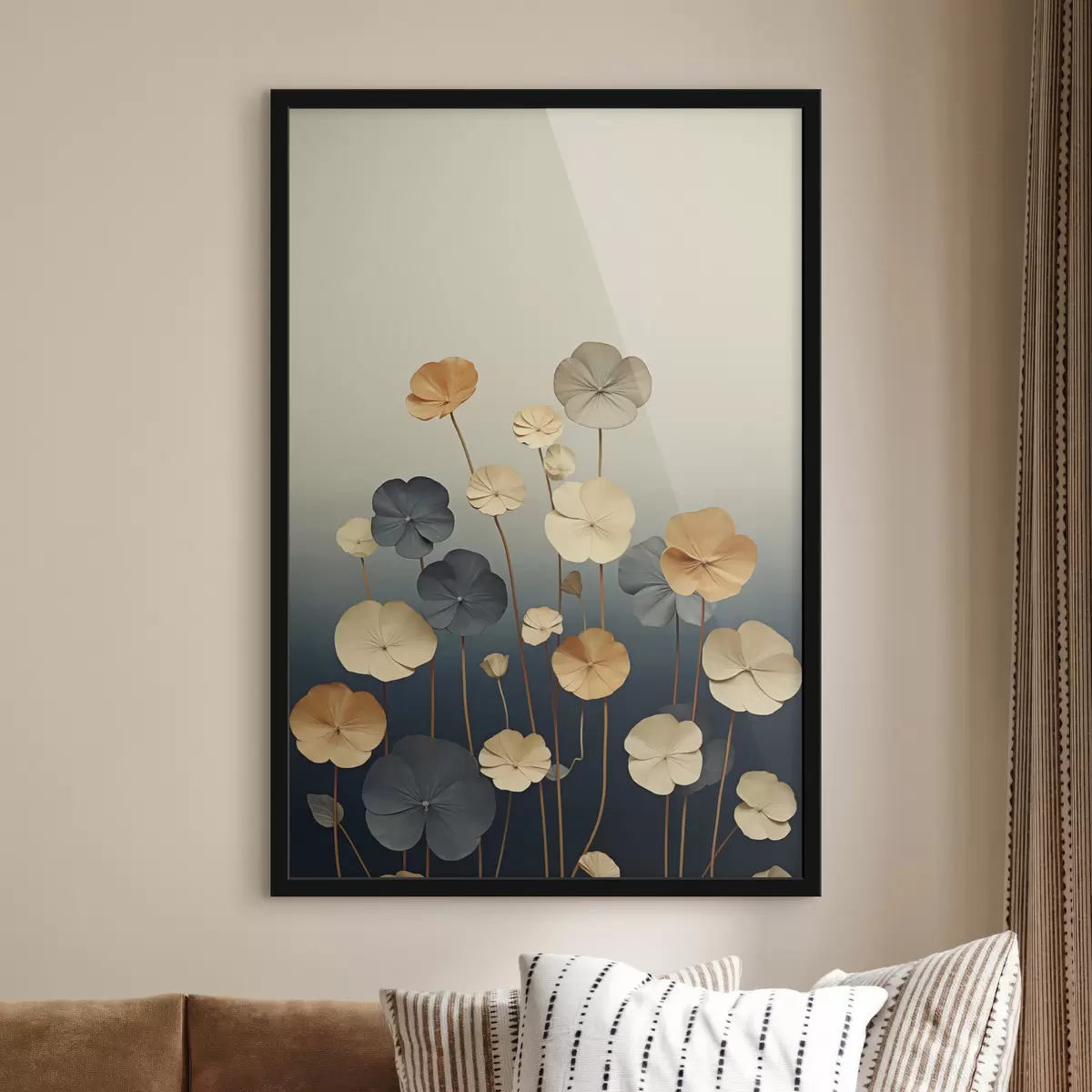Poster Frunze de nufăr pe un fundal discret, în nuanțe de bej și albastru închis Nr f48733
