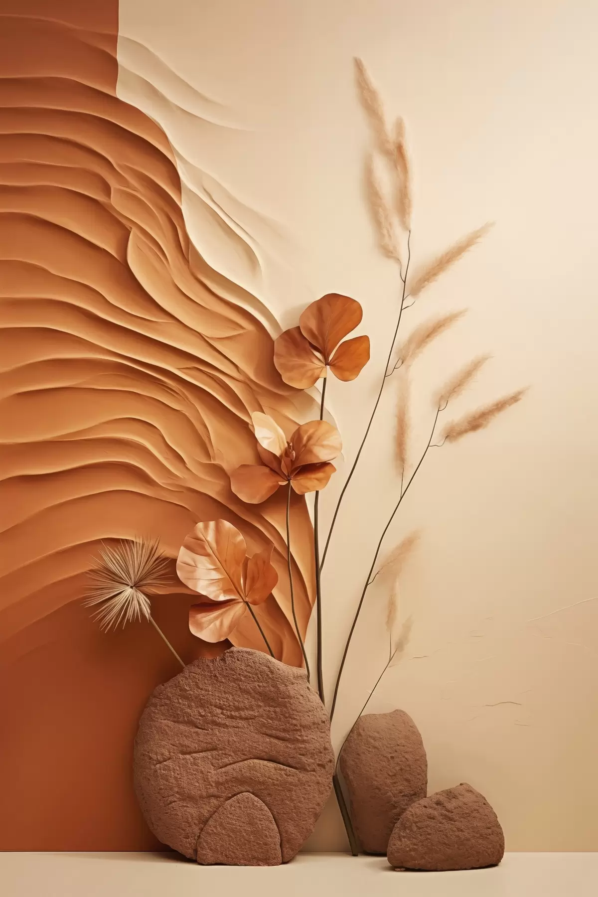 Poster O operă de artă minimalistă cu flori uscate și iarbă de pampas, pe un fundal texturat Nr f48739
