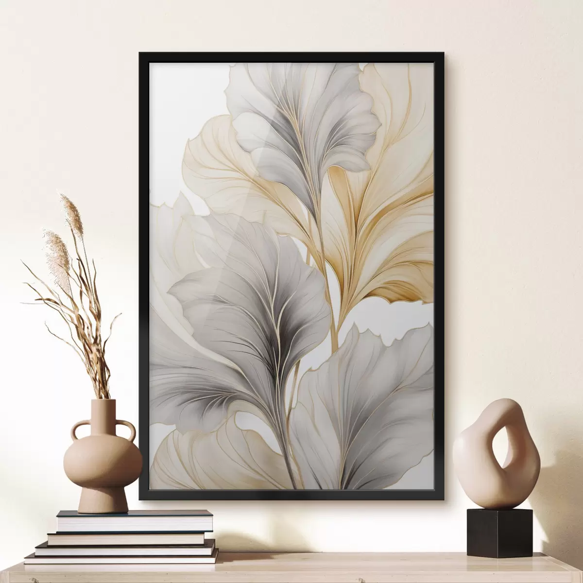 Poster Frunze mari, translucide, în nuanțe de gri și galben f48745