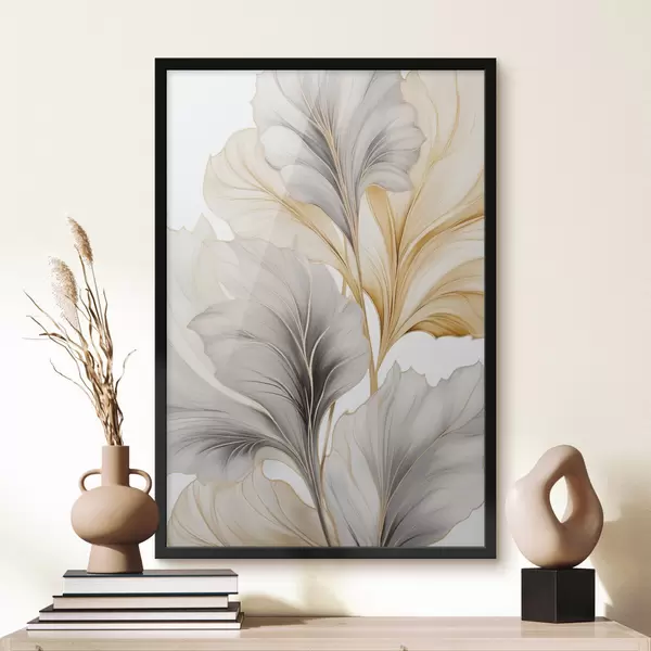 Poster Frunze mari, translucide, în nuanțe de gri și galben Nr f48745