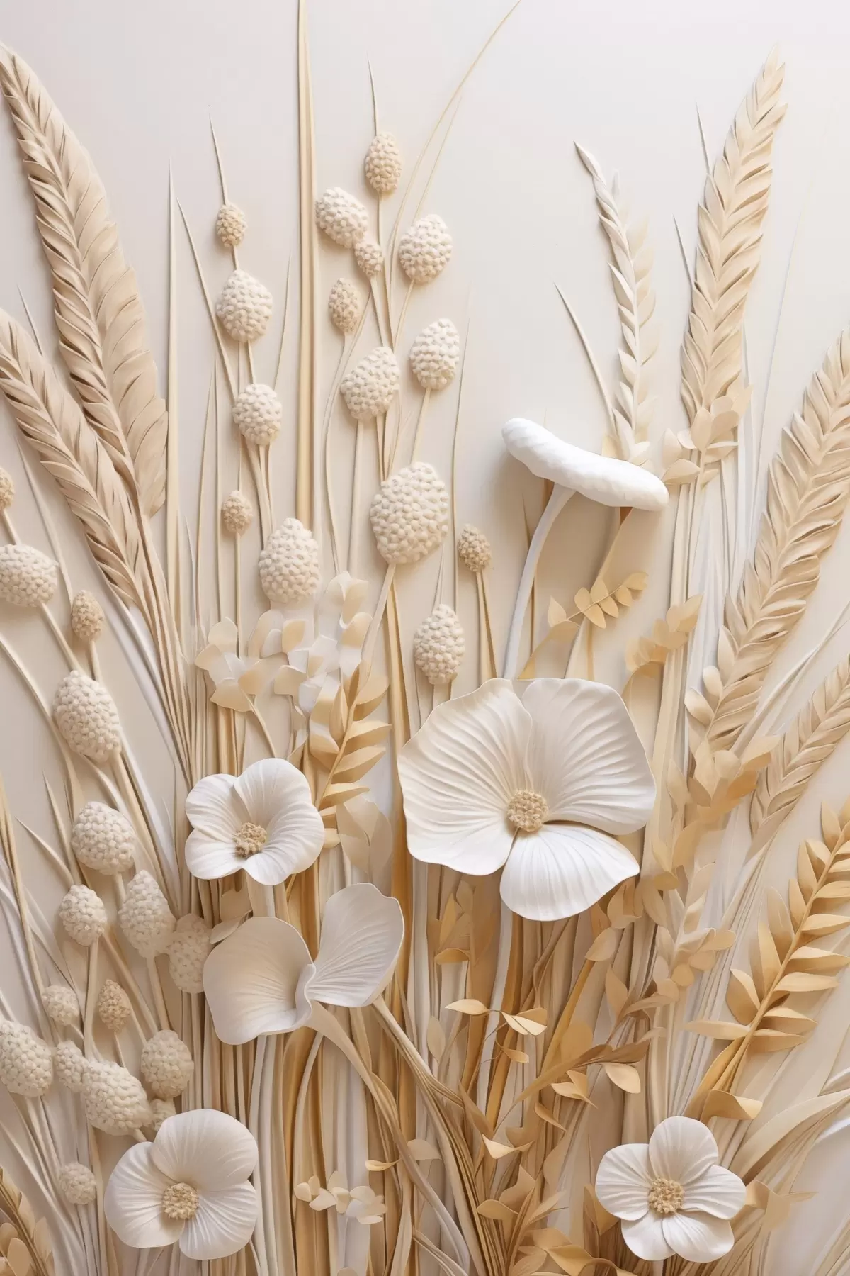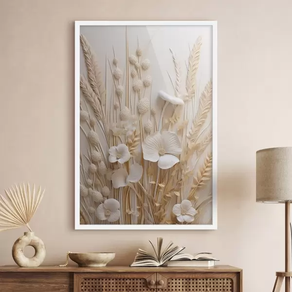 Poster Un buchet de maci crem cu tulpini de grâu uscate Nr f48748