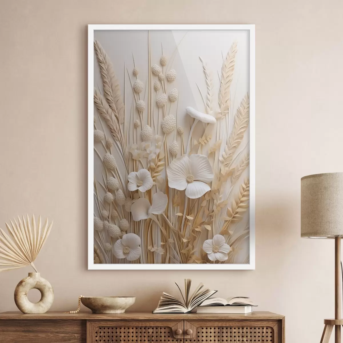 Poster Un buchet de maci crem cu tulpini de grâu uscate f48748