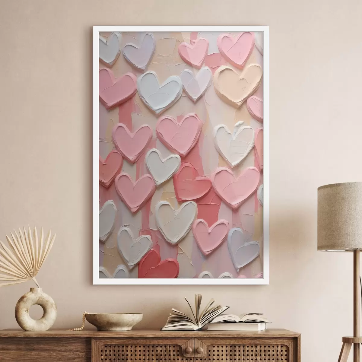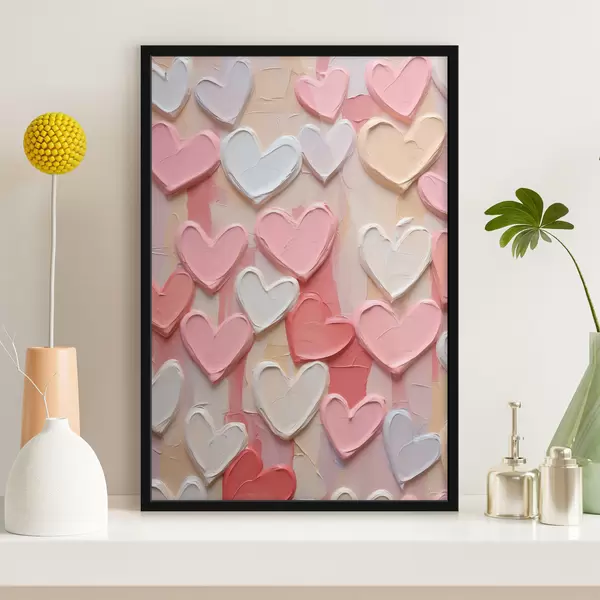 Poster Forme de inimă în diverse nuanțe de piersică și roz, realizate într-un stil pictat, cu textură Nr f48751