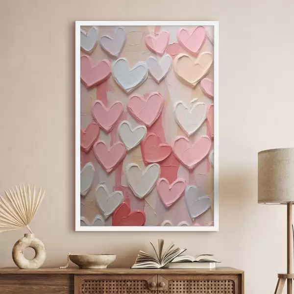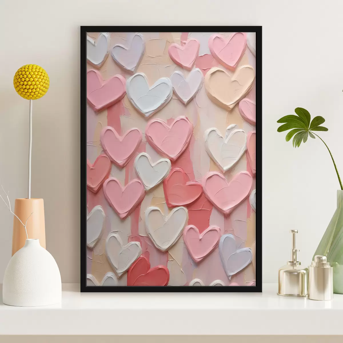 Poster Forme de inimă în diverse nuanțe de piersică și roz, realizate într-un stil pictat, cu textură f48751