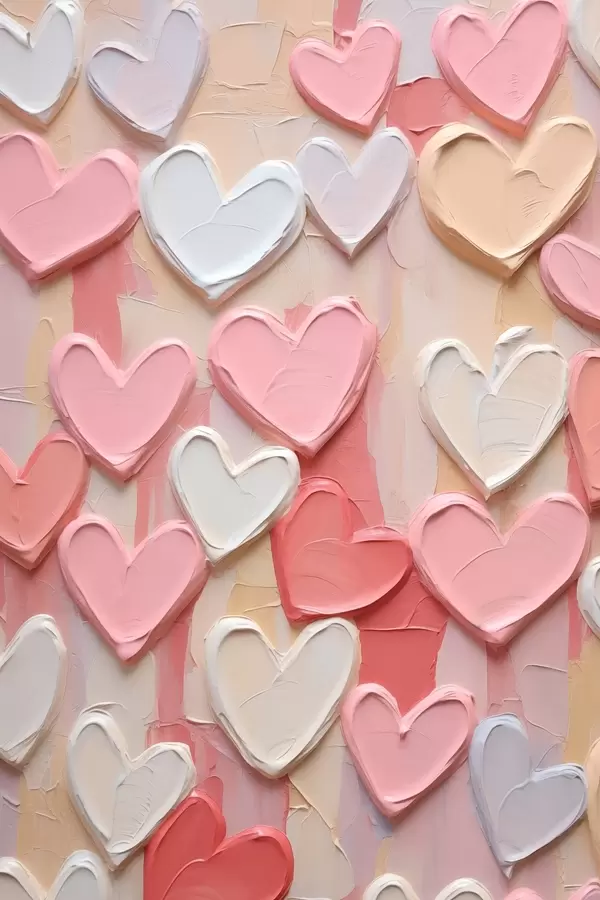 Poster Forme de inimă în diverse nuanțe de piersică și roz, realizate într-un stil pictat, cu textură Nr f48751