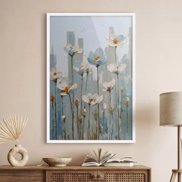 Poster flori pe fundalul orașului, în stilul picturii în ulei Nr f48786