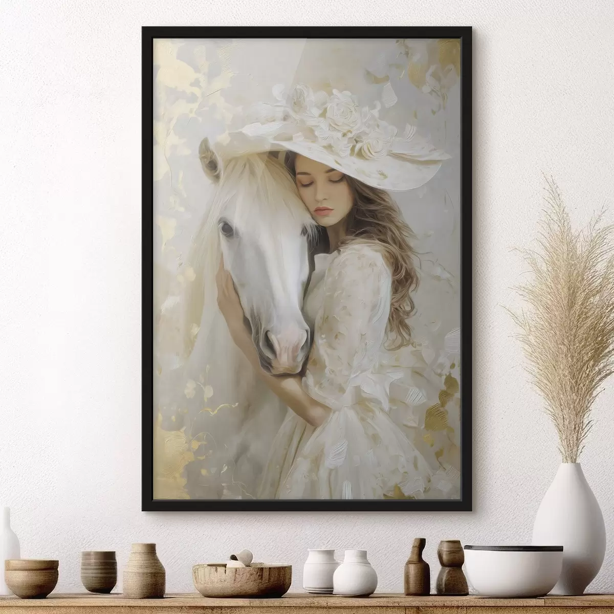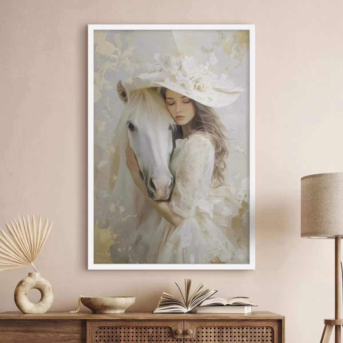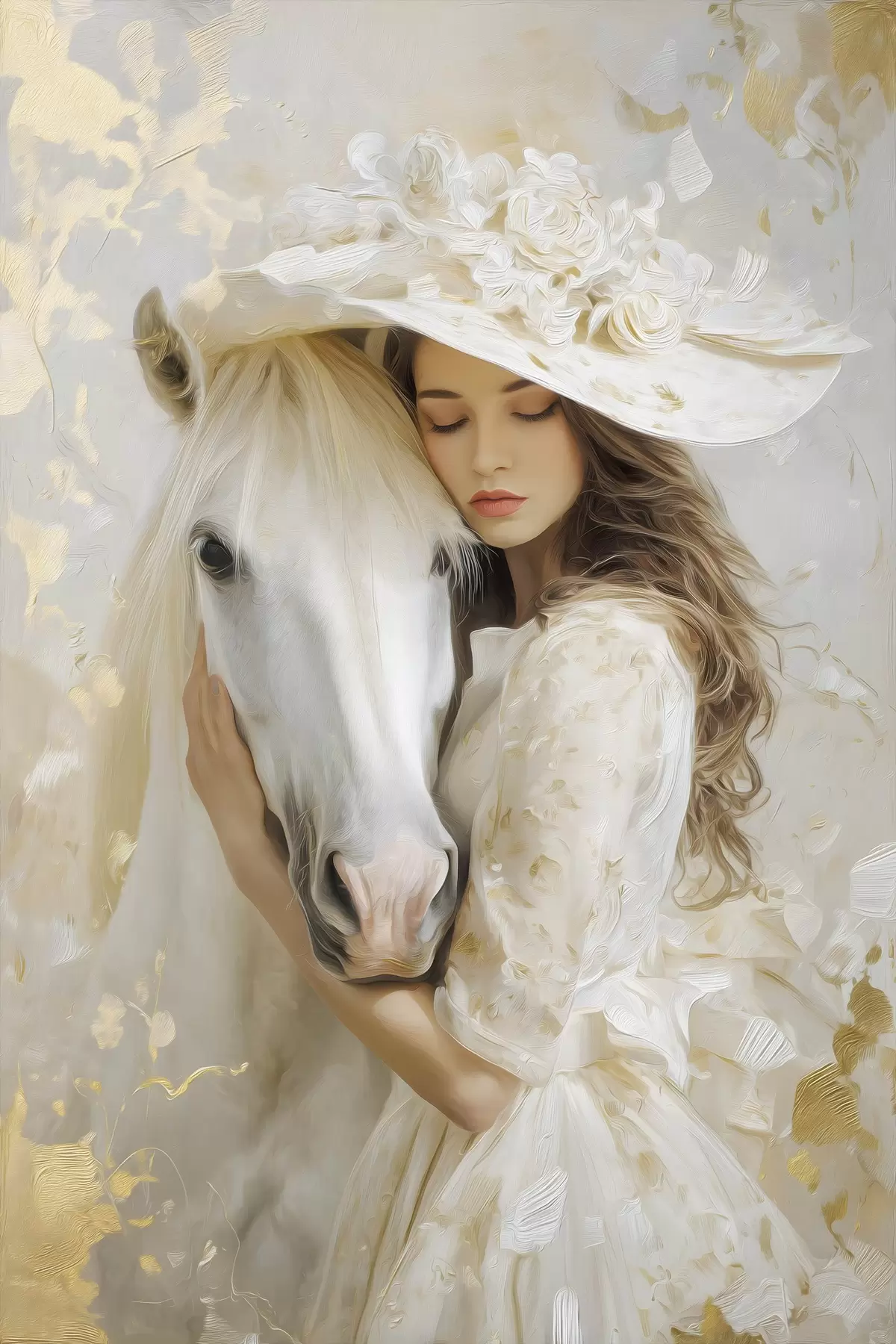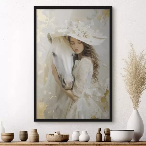Poster o fată cu un cal alb, pictată în stilul picturii în ulei f48790