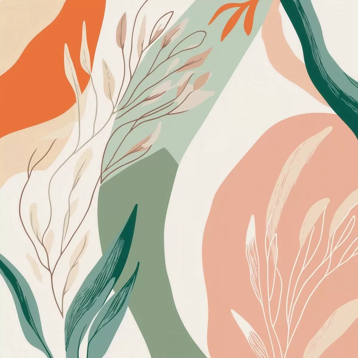 Poster Artă botanică cu forme delicate, într-o paletă de culori verde-coral Nr f48840