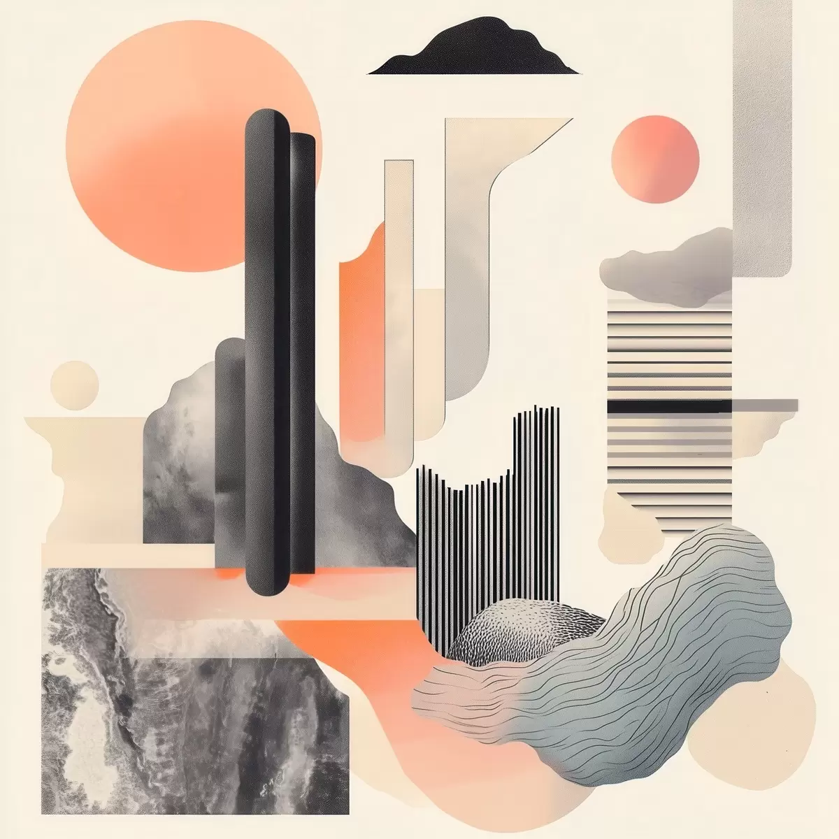 Poster Compoziție geometrică într-o paletă de culori piersică-gri, realizată într-un stil pictural contemporan Nr f48841