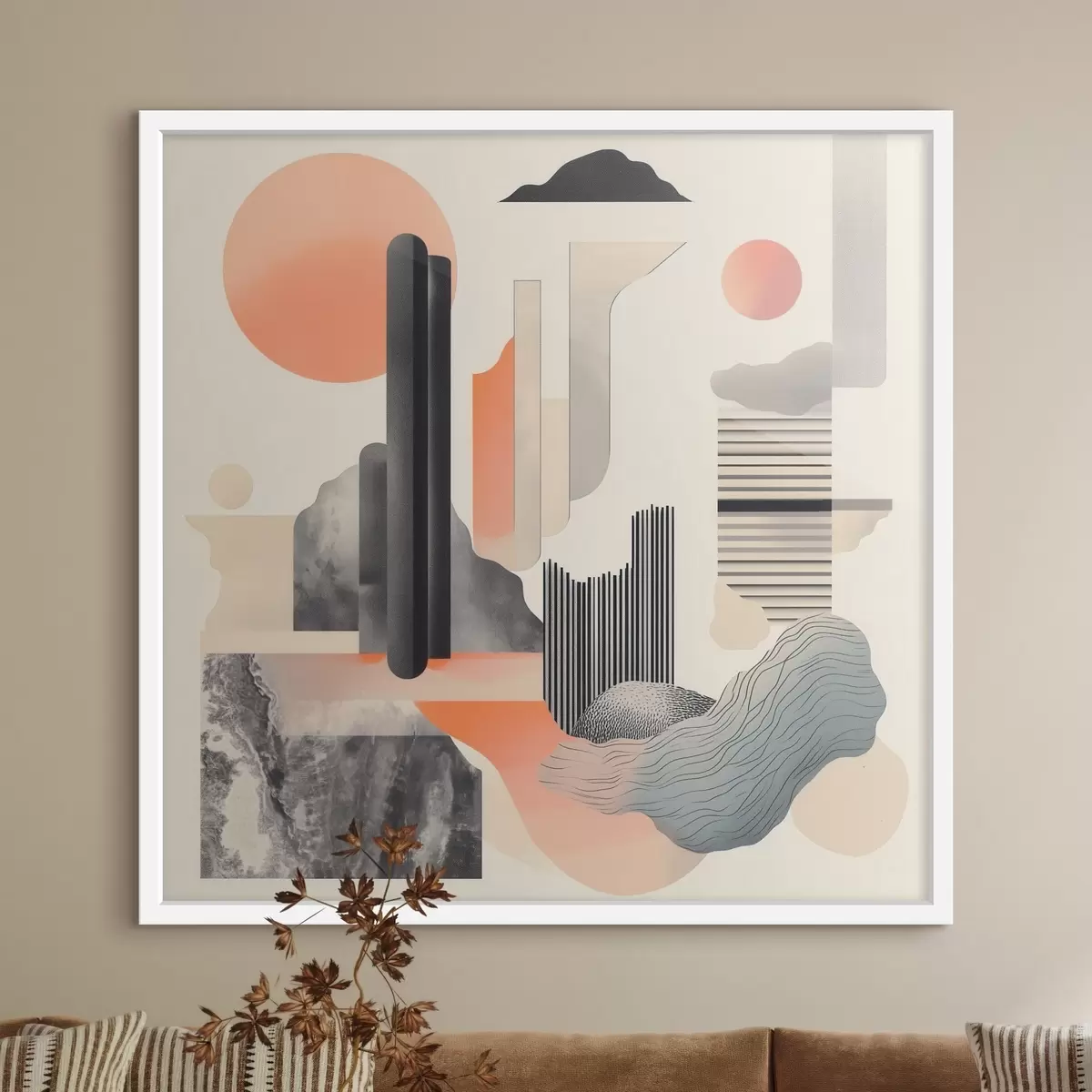 Poster Compoziție geometrică într-o paletă de culori piersică-gri, realizată într-un stil pictural contemporan f48841
