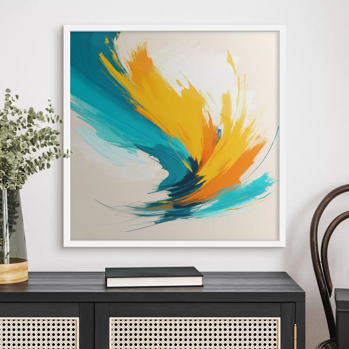 Poster Un vârtej plin de energie în nuanțe de galben și albastru, într-un stil pictural contemporan Nr f48856
