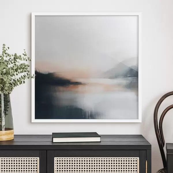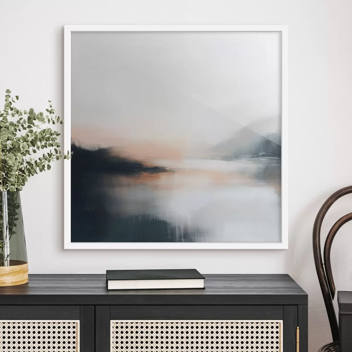 Poster Peisaj abstract, învăluit în ceață, într-o paletă caldă de nuanțe bej-coral Nr f48861
