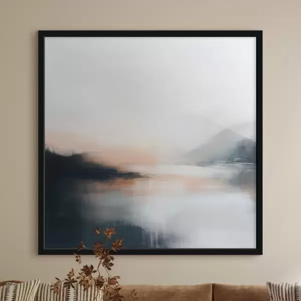 Poster Peisaj abstract, învăluit în ceață, într-o paletă caldă de nuanțe bej-coral f48861