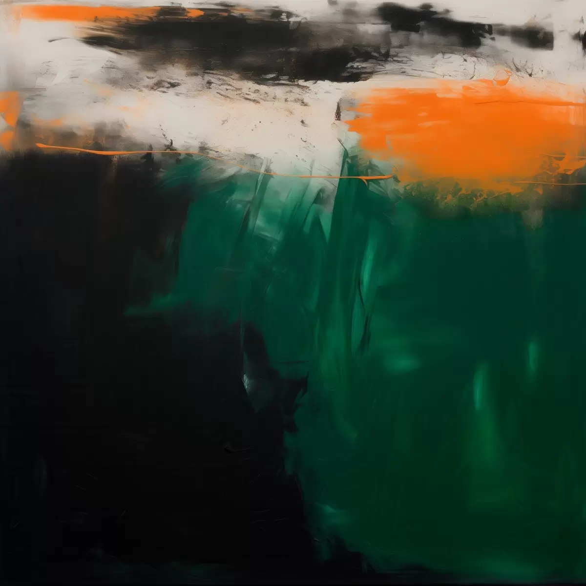 Poster O pictură abstractă cu accente portocalii și tușe de verde intens, realizată într-un stil contemporan f48865