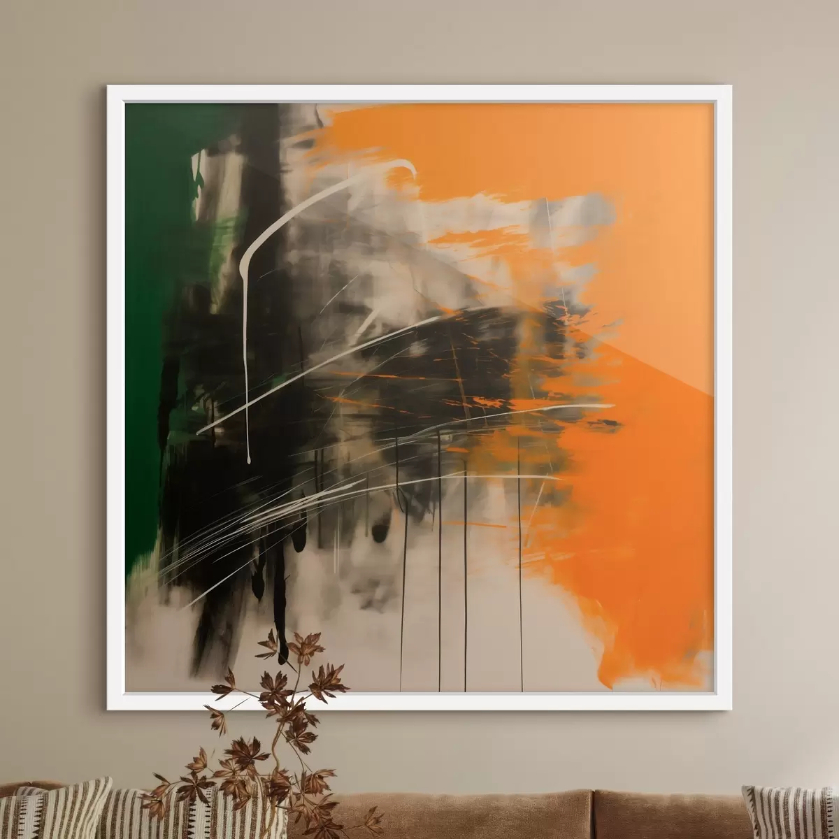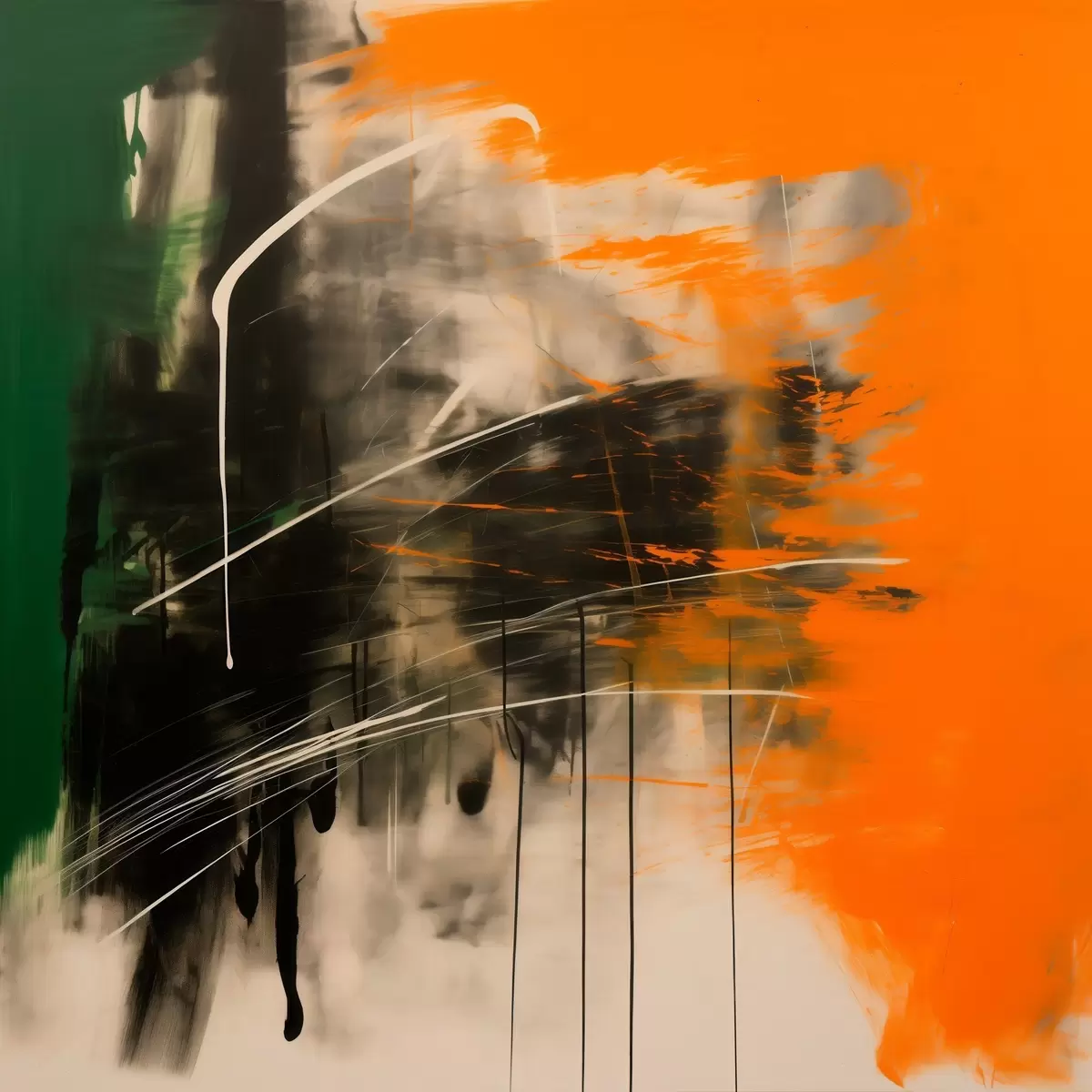 Poster O pictură abstractă cu tușe de portocaliu și verde, realizată într-un stil contemporan Nr f48866