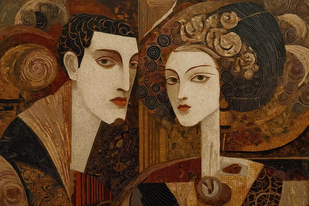 Poster Cuplu în stil mozaic, portret abstract Nr f48933