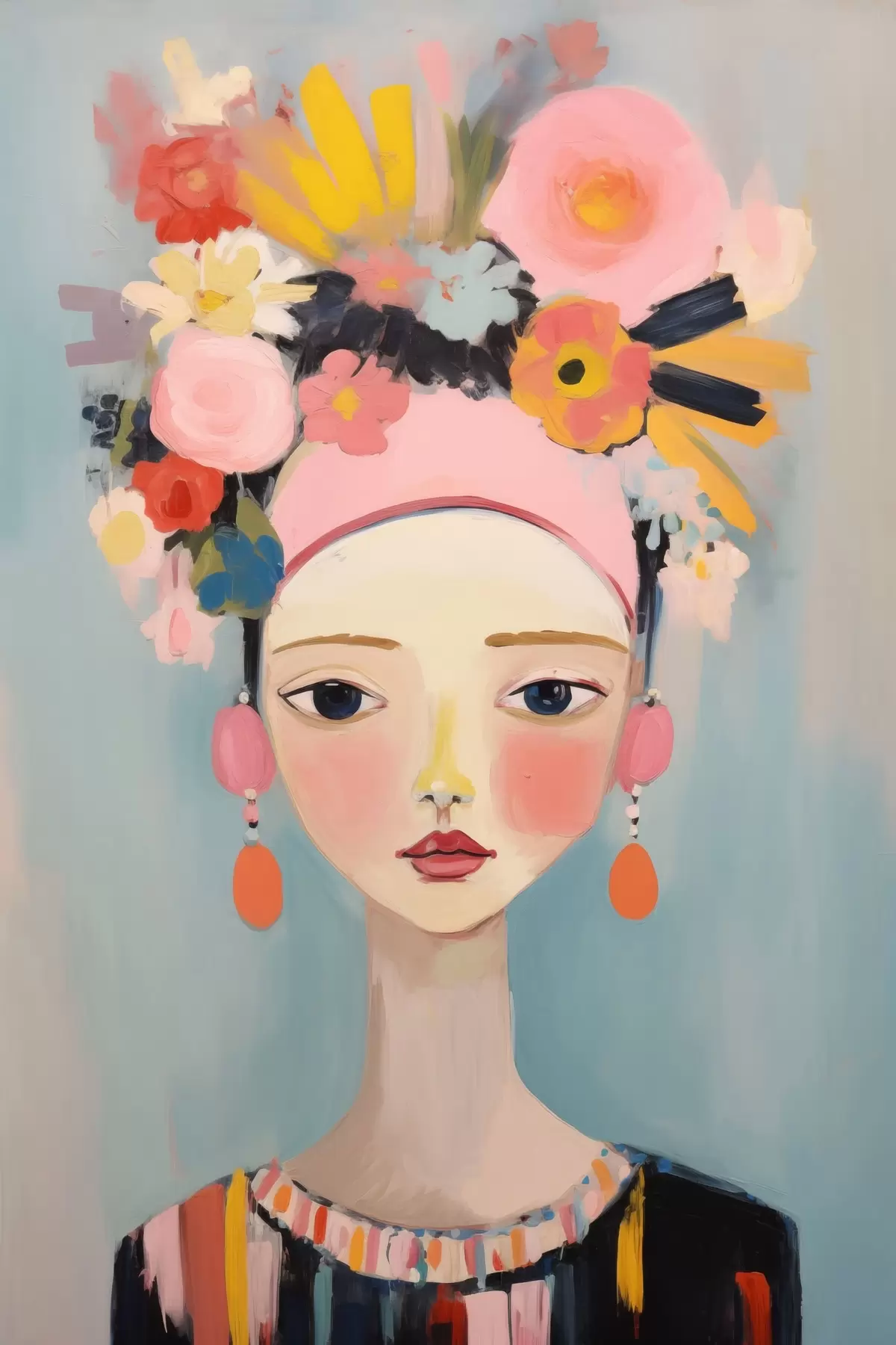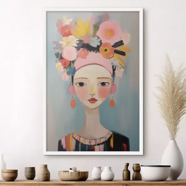 Poster Portretul unei femei cu flori în păr, în stil abstract Nr f48936