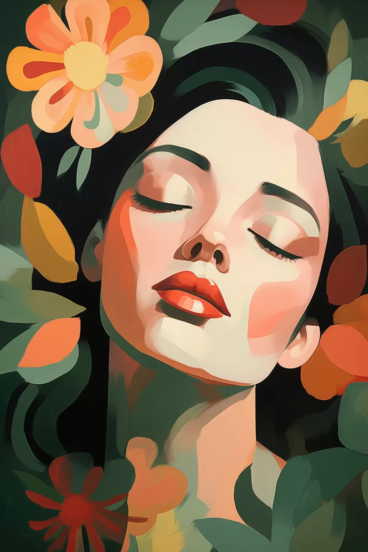 Poster Portret de femeie cu flori f48959