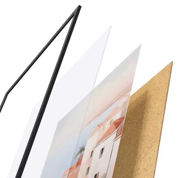 Afișul constă dintr-o ramă, plexiglas, imagine imprimată și suport din PAL. Posterul poate fi agățat imediat pe perete datorită suporturilor de pe spate.