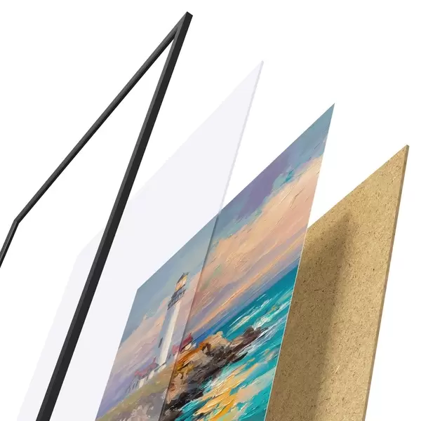 Afișul constă dintr-o ramă, plexiglas, imagine imprimată și suport din PAL. Posterul poate fi agățat imediat pe perete datorită suporturilor de pe spate.