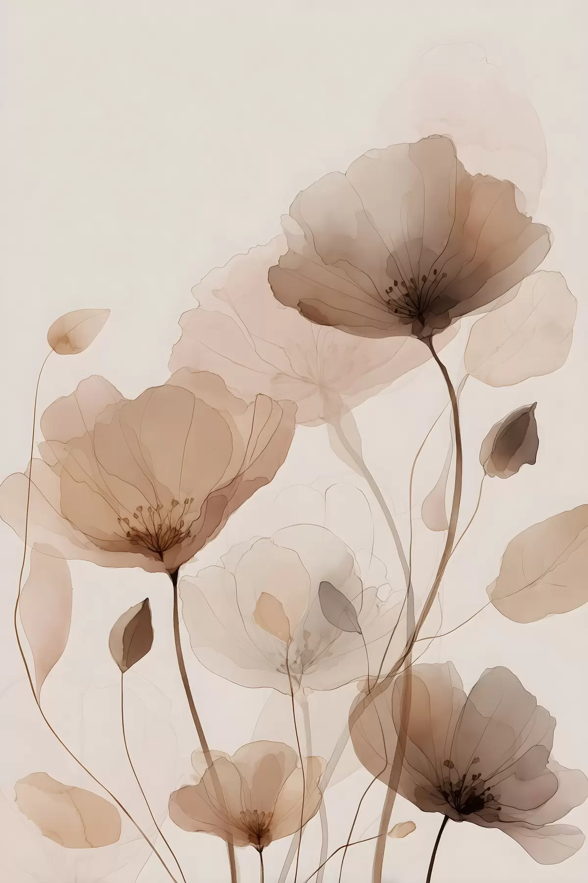 Poster flori pictate în acuarelă în nuanțe de maro Nr f49007