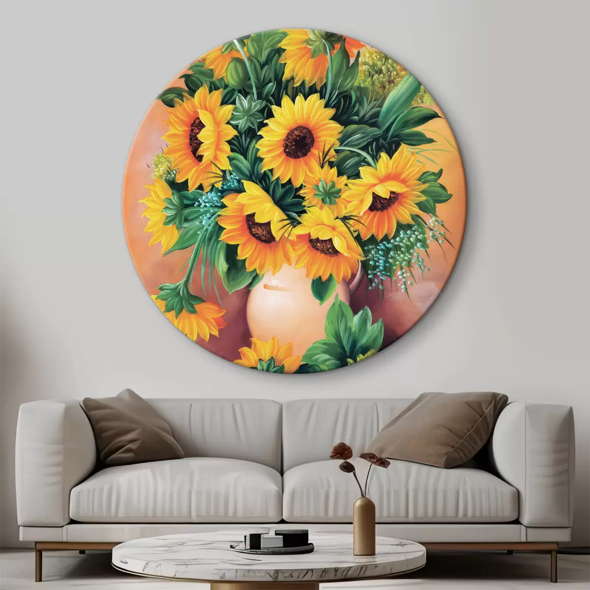 Picturi rotunde Floarea-soarelui într-o vază Nr r00860