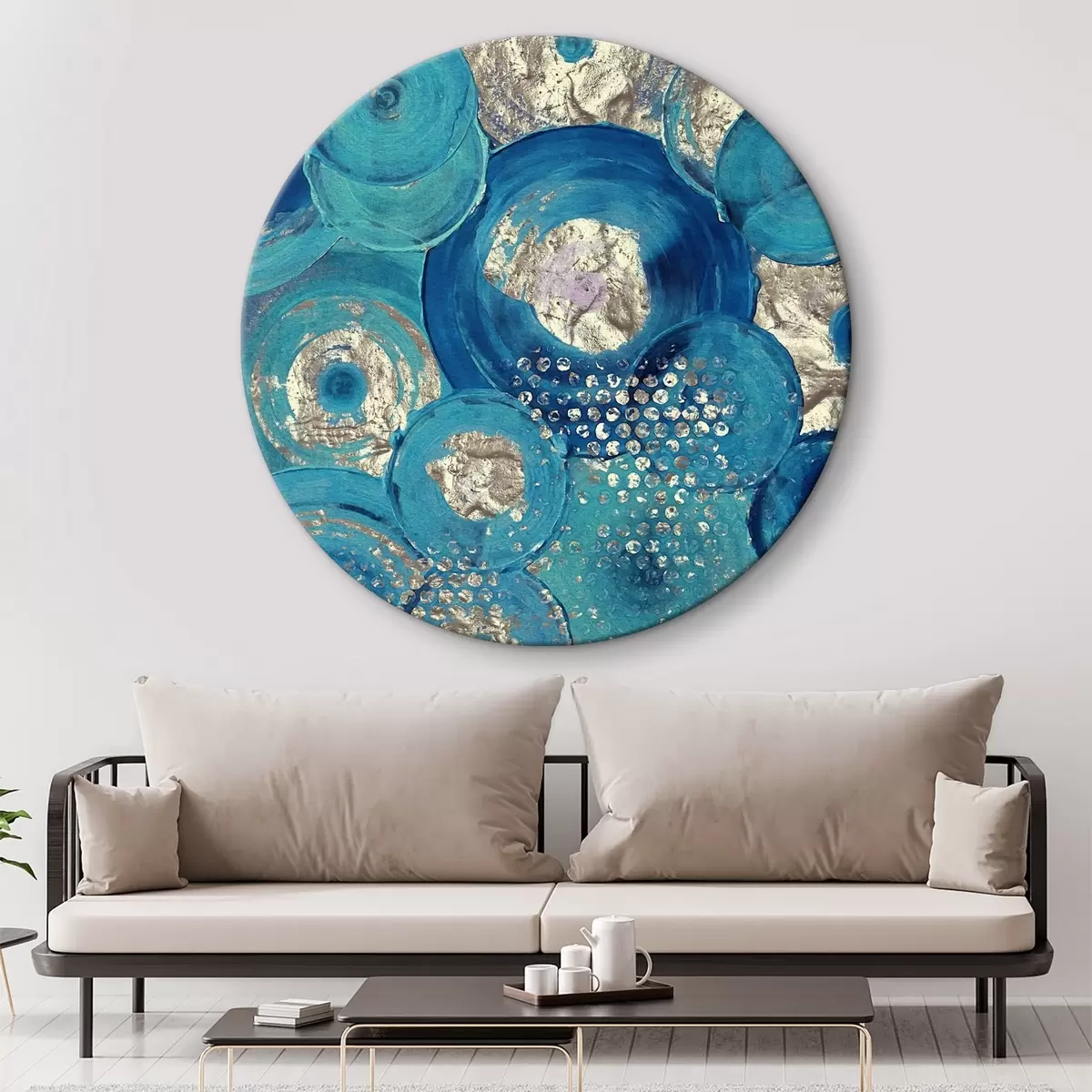 Picturi rotunde Cercuri azurii cu puncte, vopsele în ulei r01035